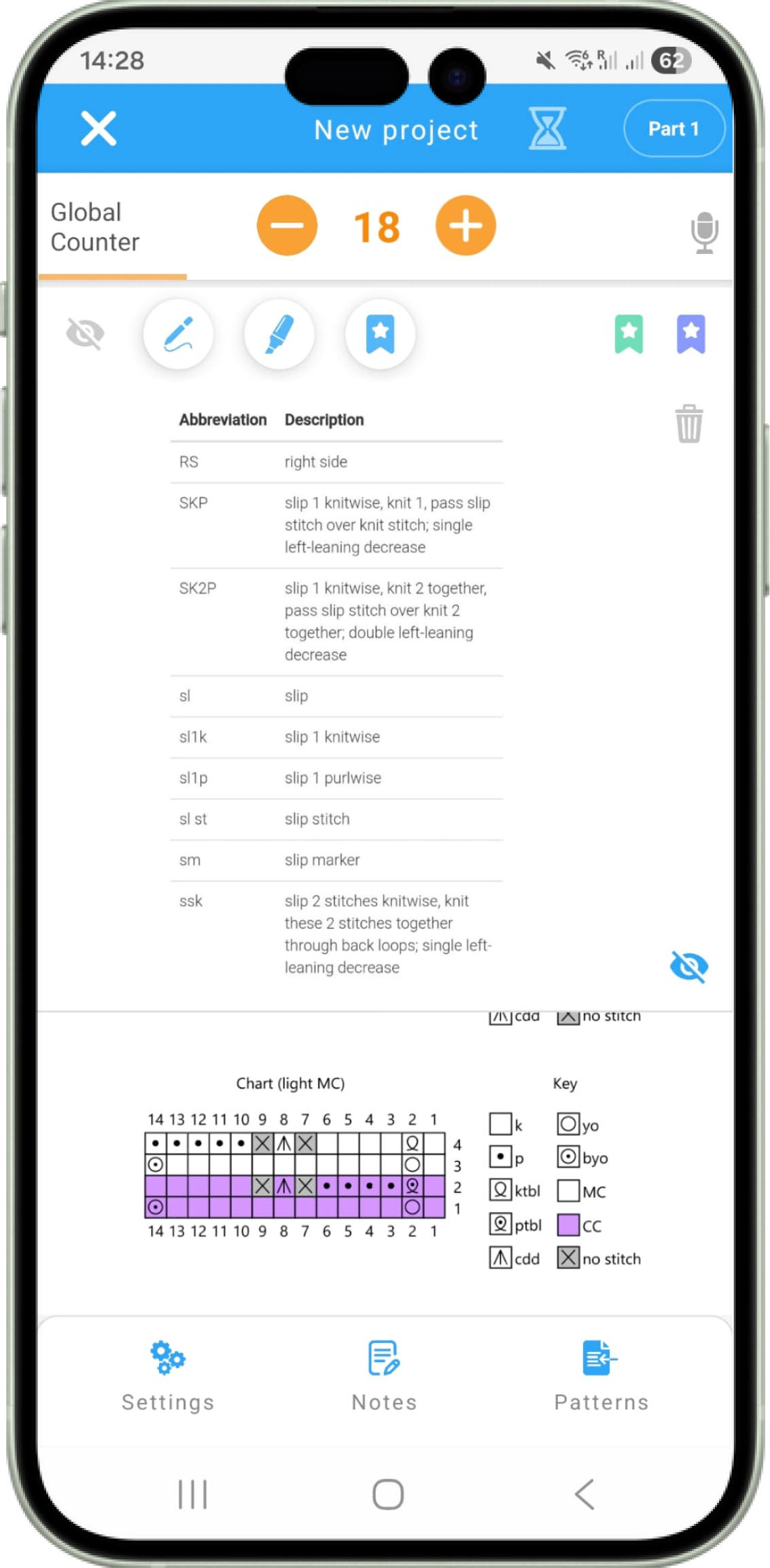 Quick and easy to use as far as the counters go. I haven't used or tried the pattern download part yet. And although there isn't a way to directly write in a pattern as a project, you can use the notes section to write up a pattern if your into making up your own. Thanks for the great app😃