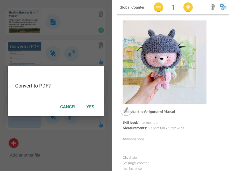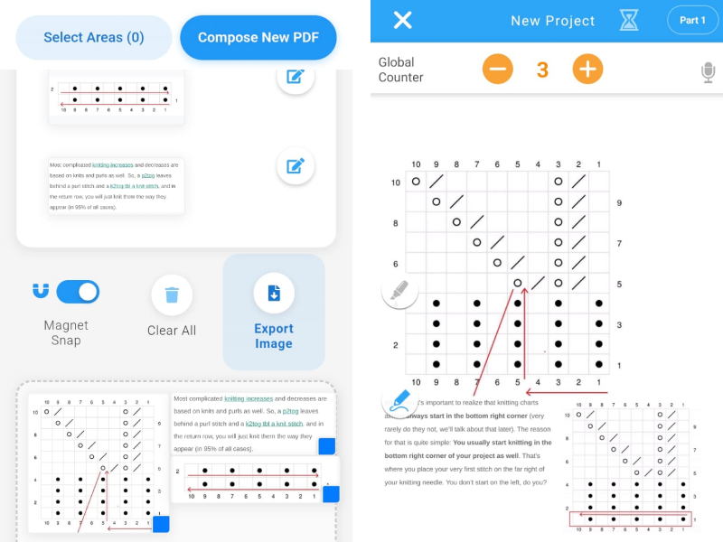 Put together a new pattern by cutting and rearranging sections of your PDF pattern. For example, put together charts or images from multiple pages into one page.