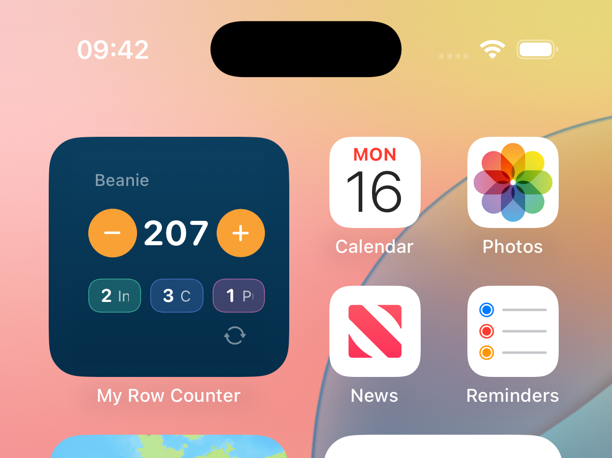 The widget to increment the global counter stays on the home screen. You can also see up to 3 (linked) secondary counters and reminders.