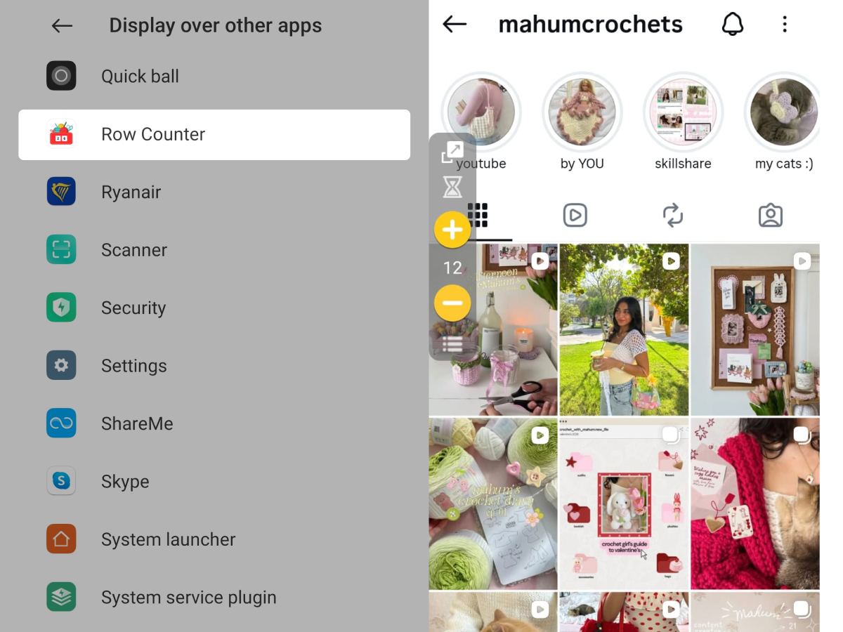 You can now use your counter while also using other apps e.g. while watching a tutorial on YouTube. Drag the counter on the display to any place. You can control your counters, turn the timer on/off and go back to the app by tapping the icon.